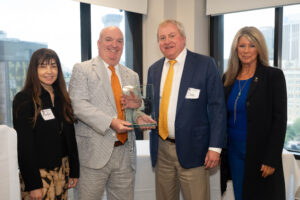 Horn Blower Award Caption2025-26 President Edmund J. Giering IV, presents the Horn Blower Award to the Lafayette Bar Foundation. Pictured L-R: Lopez, Giering, Cole, and Swift. (Photo by Patrick Niddrie)