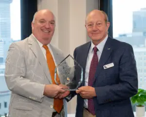 President’s Award Caption-2025-26 President Edmund J. Giering IV presents the President’s Award to George D. “Dave” Ernest III at the LBF Annual Meeting. Pictured L-R: Giering and Ernest. (Photo by Patrick Niddrie)